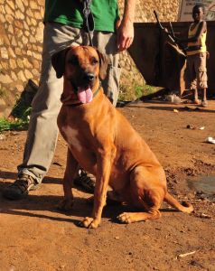 Hoewel er veel dingen zijn waar je op straat in kunt trappen, zeg een plas een kuil of een stuk rottend fruit, is hondepoep geen van de voorliggende gevaren. De weinige honden op straat zijn zonder uitzondering ondervoede, schurftige luizenbossen en liggen er meestentijds voor dood bij. Een enkele keer zie je wel een goed verzorgde hond, dan hoort ‘ie bij één van de vele beveiligingsfirma’s die de stad telt. Zo’n hond zit dan in een wagen met woest kijkende mannen en blaft wat om zich heen en je vraagt je af hoe hongerig ze hem houden. Kleine en wendbare exemplaren worden soms voor de jacht gebruikt. Andere honden liggen ergens op een erf aan de ketting, die zijn er om huis en haard te bewaken en niet, zoals bij ons, voor het gezelschap. Een echt goede reden om de hond aan de ketting te houden is rabiës of hondsdolheid. Jaarlijks sterven zo’n 55.000 mensen wereldwijd aan deze virusinfectie, die de hersenen aantast en die onbehandeld onherroepelijk de dood tot gevolg heeft. Het merendeel van de slachtoffers valt in Afrika. Rabiës wordt via het speeksel van zoogdieren op mensen overgebracht. Vaak zijn dit honden, maar ook andere zoogdieren zoals vleermuizen, vossen, katten en apen kunnen de ziekte dragen. Eén beet volstaat, soms kan een krab of lik al besmettelijk zijn. Vooral kinderen vallen aan rabiës ten prooi, omdat die sneller geneigd zijn zo’n lief dier eens lekker te aaien zonder gevaar te zien. Honden worden wel gevaccineerd, maar dat is duur, dus wie het ontduiken kan zal het niet laten. In de stad worden ook hondemeppers ingezet om loslopende exemplaren van straat te halen. Zijn ze ziek dan worden ze afgemaakt, anders ingeënt en verkocht, al vraag ik me af wie daar geld voor over heeft. De gedachten gaan al snel uit naar de Chinees om de hoek. Dat de verkoper van blinkende hondenriemen en halsbanden, bezet met noppen en strass, het veld nog niet heeft geruimd blijft verbazen. Misschien voorziet hij een trend. De moderne Afrikaan is gevoelig voor gadgets, dat is zeker. In het rijke westen is de hond een statussymbool. Als we het kopiëergedrag beschouwen en nu in het stadium verkeren van de mobiele telefoon als onderscheidingsteken, dan zal het niet lang meer duren voordat de hond het hier gaat maken. Vooralsnog echter zijn de enige lieden die je een hond kunt zien uitlaten blanke expats, wier huisdier is meegereisd naar het andere eind van de wereld. Hector is zo’n huisdier, een Rhodesian Ridgeback met glanzende pels en parelwitte tanden, 45 kilo jachthond schoon aan de haak. Onlangs kregen wij Hector mee voor een wandeling, zodat de baas zijn aandacht op andere zaken kon richten. Het was een bijzondere ervaring. Alsof de Rode Zee zich opende, zo week de massa op straat uiteen als ze ons met de overigens oer-goeiige loebas in het zicht kregen. Kinderen zetten een keel op of verscholen zich met paniek in de ogen achter een geparkeerde auto. Moeders hielden hun kroost beschermend achter de rokken en bleven op afstand tot we gepasseerd waren, volwassen kerels sprongen de lucht in van schrik en staken snel de straat over om het bakbeest te ontlopen. De wat meer dappere zielen vroegen of ‘ie beet, waarop ik bleef herhalen dat ‘ie echt très, très gentil was. Het was hilarisch maar voelde ook ongemakkelijk. Beelden van Afrikaners die hun hond speciaal op het grijpen van de donkere medemens hebben afgericht doken op in het achterhoofd. Daar wil je als weldenkende blanke natuurlijk niet mee geassocieerd worden. Op de vraag waarom ze nou zo bang zijn, kwam het volgende intrigerende antwoord: wel, omdat Europese honden echt plus méchant zijn. Dat weet iedereen. Prettige bijkomstigheid van dit vooroordeel: het was eindelijk eens een makkie om foto’s te schieten. Niemand zou het in z’n hoofd halen daar in het bijzijn van Hector wat van te zeggen.